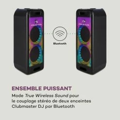- Puissantes ensemble : mode True Wireless Sound pour le couplage stéréo de deux enceintes Clubmaster DJ par Bluetooth