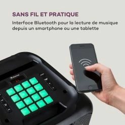 L’enceinte DJ auna Clubmaster est l’invitĂ© vedette de toutes les soirĂ©es et karaokĂ©s grâce Ă ses performances Ă©levĂ©es, ses 3 effets de lumière LED multicolores et son pad DJ polyvalent.