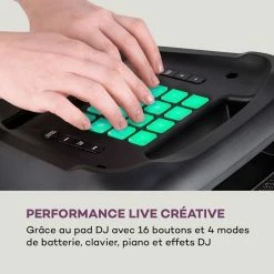 - Creative Live-Performance : grâce au Pad DJ à 16 boutons et aux 4 modes Drum, Keyboard, Piano et effets DJ