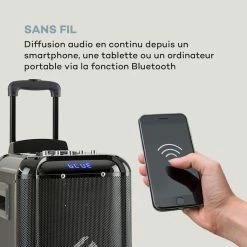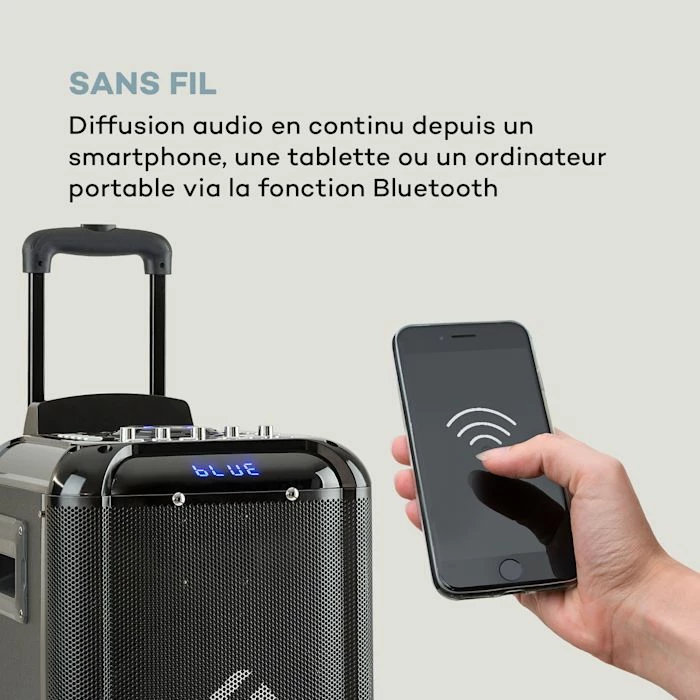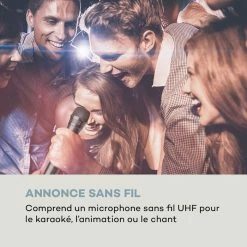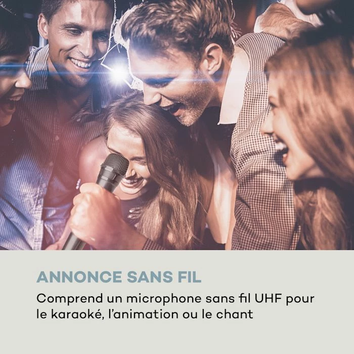 - Annonces sans fil : micro UHF fourni pour les karaokés, animations ou performances vocales