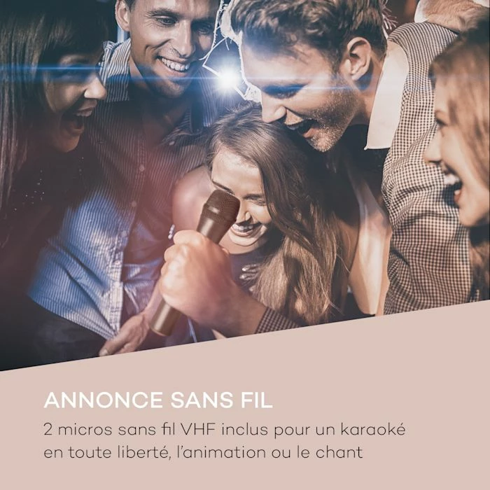 - Sans fil : microphone VHF sans fil inclus pour karaoké, animations ou chanson
