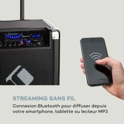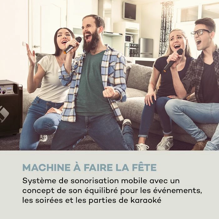 - Party machine : système mobile pour DJ / karaoké avec un concept de son équilibré pour les soirées, les fêtes et les parties de karaoké