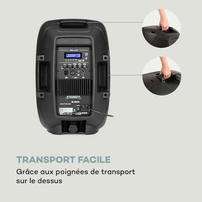 De quoi faire parler la puissance : la puissante enceinte de sono auna Pro active SLK-10-A convainc par la clartĂ© du son produit, sa grande compatibilitĂ© et son design Ă©purĂ©, et fait battre plus fort le coeur des pros de la musique comme des amateurs audio. Le spĂ©cialiste de la sonorisation de 10″ (25 cm) vous attend avec sa puissance de 400 W max ainsi que sa technologie XMR Bass , et dispose d’un boĂ®tier ABS hydrofuge adaptĂ©. EquipĂ©e de ports USB et SD, l’Ă©lĂ©gante boĂ®te Ă son permet la lecture directe des MP3, et peut ĂŞtre commandĂ©e par son propre panneau de contrĂ´le avec Ă©cran LCD et rĂ©troĂ©clairage. L’enceinte possède en outre une entrĂ©e et sortie de ligne pour vous connecter aux sources musicales externes, ainsi que 2 entrĂ©es de micro. La fonction Bluetooth et la tĂ©lĂ©commande fournie permettent en outre de contrĂ´ler l’appareil et de diffuser de l’audio sans fil et confortablement sans vous lever. De plus, ce puissant caisson est d’utilisation polyvalente et peut s’installer sur un trĂ©pied d’enceinte grâce Ă son embase de 35 mmm intĂ©grĂ©e, ou bien servir de moniteur de scène pour les concerts et autres Ă©vènements avec un son puissant.