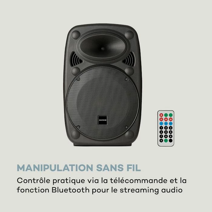 De quoi faire parler la puissance : la puissante enceinte de sono auna Pro active SLK-8-A convainc par la clartĂ© du son produit, sa grande compatibilitĂ© et son design Ă©purĂ©, et fait battre plus fort le coeur des pros de la musique comme des amateurs audio. Le spĂ©cialiste de la sonorisation de 8″ (20 cm) vous attend avec sa puissance de 300 W max ainsi que sa technologie XMR Bass , et dispose d’un boĂ®tier ABS hydrofuge adaptĂ©. EquipĂ©e de ports USB et SD, l’Ă©lĂ©gante boĂ®te Ă son permet la lecture directe des MP3, et peut ĂŞtre commandĂ©e par son propre panneau de contrĂ´le avec Ă©cran LCD et rĂ©troĂ©clairage. L’enceinte possède en outre une entrĂ©e et sortie de ligne pour vous connecter aux sources musicales externes, ainsi que 2 entrĂ©es de micro. La fonction Bluetooth et la tĂ©lĂ©commande fournie permettent en outre de contrĂ´ler l’appareil et de diffuser de l’audio sans fil et confortablement sans vous lever. De plus, ce puissant caisson est d’utilisation polyvalente et peut s’installer sur un trĂ©pied d’enceinte grâce Ă son embase de 35 mmm intĂ©grĂ©e, ou bien servir de moniteur de scène pour les concerts et autres Ă©vènements avec un son puissant.
