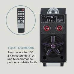 - Tout compris : un woofer de 10″, 2 x tweeters de 3″ et une tĂ©lĂ©commande pour un contrĂ´le pratique