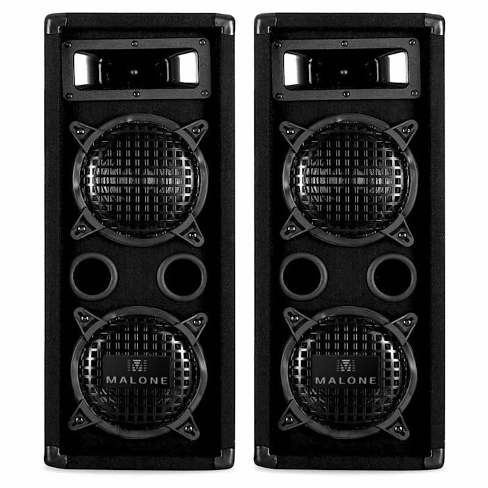 Fat beats : l’ensemble Hifi 3 Ă©lĂ©ments composĂ© de l’amplificateur numĂ©rique Fenton FPL500 de classe D et de deux enceintes de sono 3 voies Malone PW-65X22 peut ĂŞtre utilisĂ© Ă la maison comme dans un cadre semi-professionnel ou professionnel.