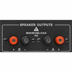 - Connexions: 1 x entrée jack 3,5 mm (située à l’avant), 2 x sortie stéréo bornes à vis, 3 x entrée stéréo RCA