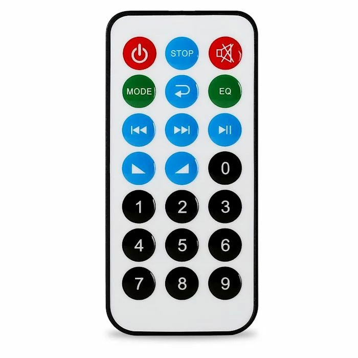 - Connexions: 1 x entrée USB (en façade), 1 x entrée SD (en façade), 1 x entrée jack AUX (en façade), 3 x entrée stéréo RCA, 2 x bornes pour la connexion de haut-parleurs stéréo