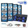 - Connexions: 2 x entrées jack 6,3 mm pour micro (avant), 2 x entrées ligne RCA stéréo, 1 x entrée AUX jack 3,5 mm (avant), 2 x jeu de bornes à vis pour connecter les haut-parleurs