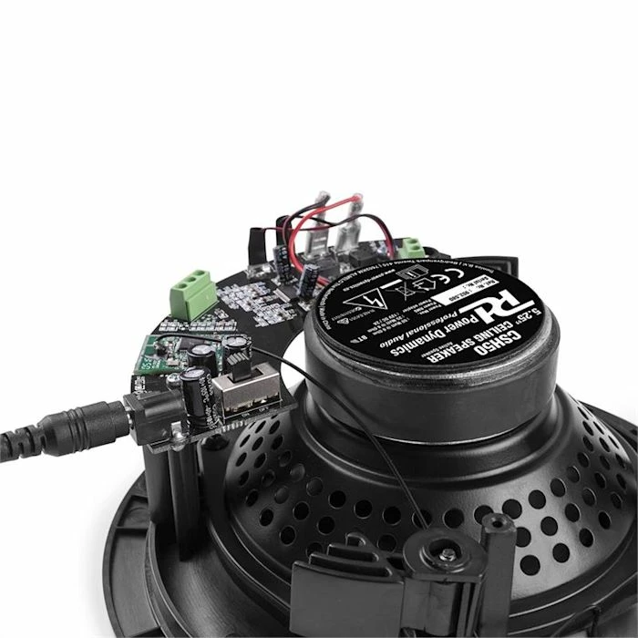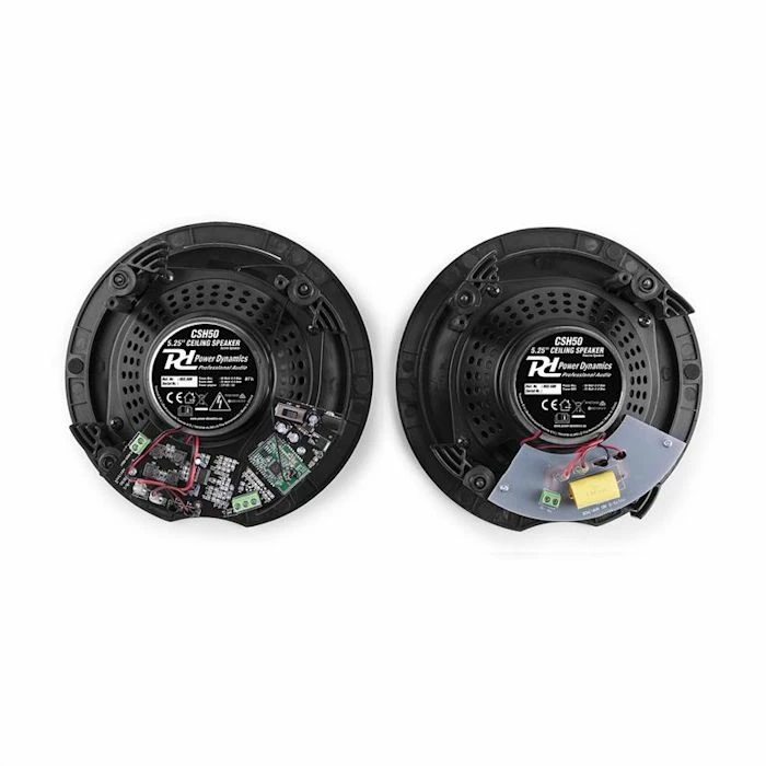 Le set d’enceintes de plafond Power Dynamics CSH50 se compose de deux enceintes et d’un amplificateur au design raffiné à encastrer dans un plafond. Discrètes, elles se font entendre dans toute la pièce.Â