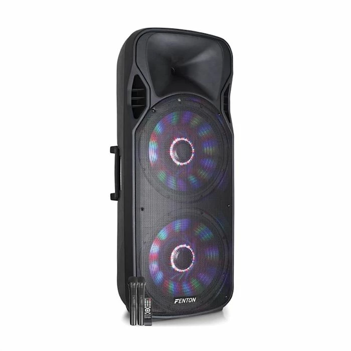 Que la fĂŞte commence ! L’enceinte active Fenton FT215LED ne fournit pas seulement le son nĂ©cessaire aux soirĂ©es et aux Ă©vĂ©nements, mais aussi une ambiance parfaite grâce Ă son jeu de lumières LED intĂ©grĂ© !