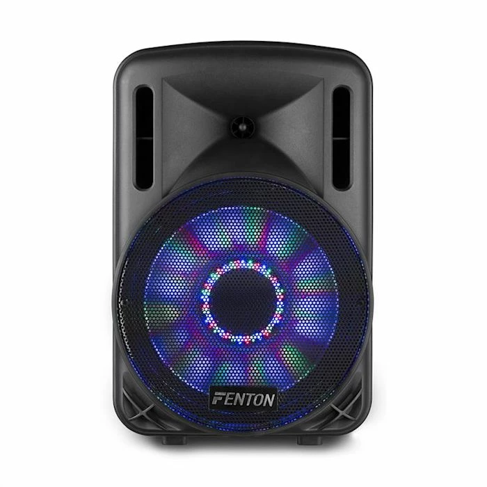 Que la fĂŞte commence ! L’enceinte active Fenton FT12LED ne fournit pas seulement le son nĂ©cessaire aux soirĂ©es et aux Ă©vĂ©nements, mais aussi une ambiance parfaite grâce Ă son jeu de lumières LED intĂ©grĂ© !