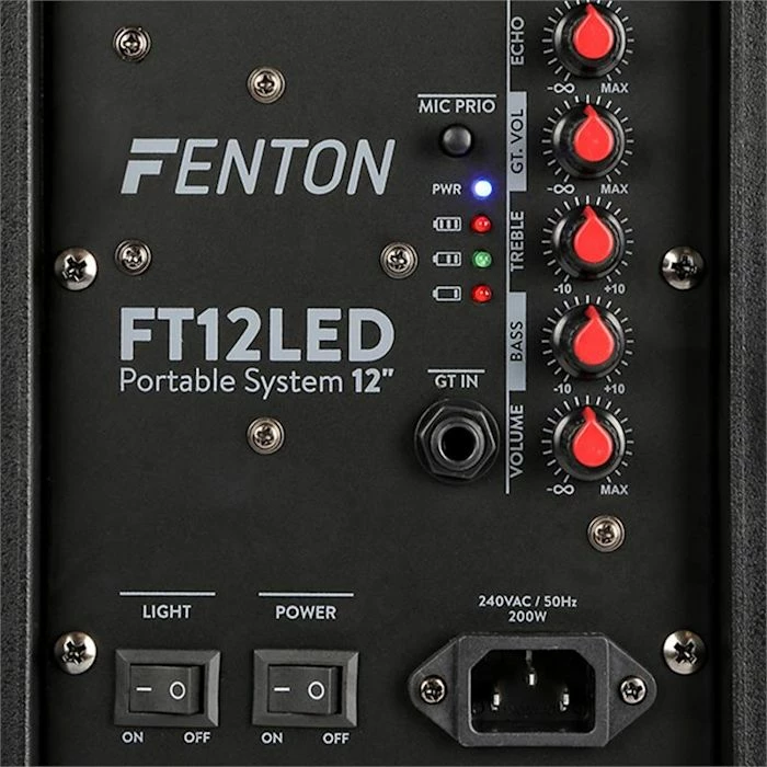 L’enceinte mobile Fenton FT12LED de 700 watts en puissance de sortie fournit des basses puissantes avec son subwoofer 12″ et des agus clairs avec son tweeter de 1″. Vous pouvez alors diffuser de la musique sans fil via Bluetooth depuis un smartphone ou une tablette, ou bien accĂ©der aux bases de donnĂ©es MP3 via le lecteur multimĂ©dia intĂ©grĂ© par les ports USB et le lecteur SD, ou encore accĂ©der aux chaĂ®nes stĂ©rĂ©o, lecteurs CD ou radios par l’entrĂ©e AUX classique. L’Ă©clairage LED intĂ©grĂ© au woofer offre une ambiance colorĂ©e Ă votre soirĂ©e. Pour le rĂ©glage du son, les aigus, les graves, l’effet Ă©cho du micro et son volume ainsi que le volume principal peuvent ĂŞtre contrĂ´lĂ©s sĂ©parĂ©ment.