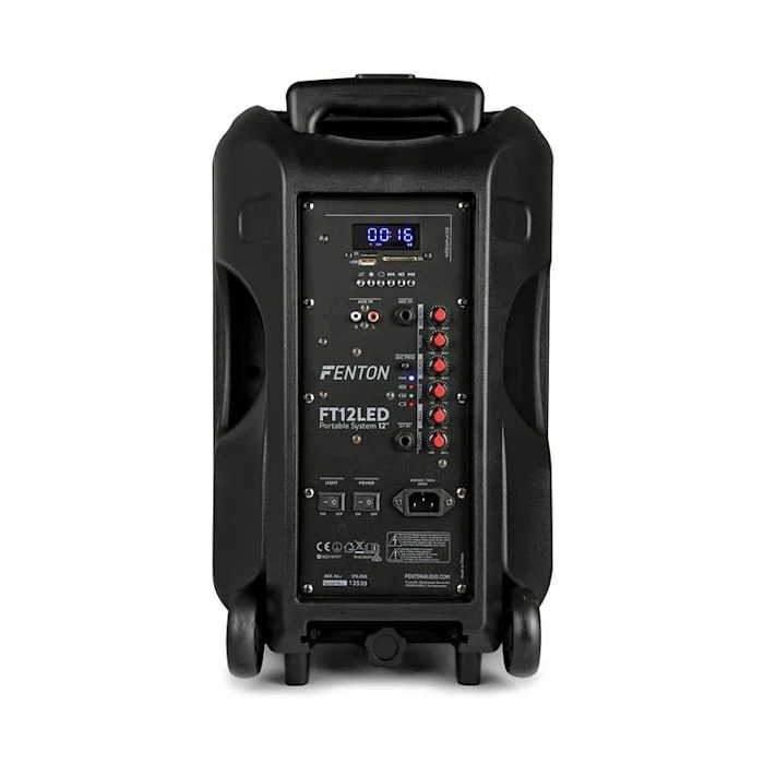 Les sĂ©ances d’animation ou de karaokĂ© n’ont pas non plus Ă©tĂ© oubliĂ©es : un micro UHF sans fil est fourni et peut se placer directement par-dessus la musique via Talkover. Une bride de trĂ©pied de 35 mm Ă©galement disponible permet l’installation sur scène, tandis que l’autonomie de la batterie de 3 Ă 5 heures fournit un son indĂ©pendant de la puissance. Pour que l’enceinte active Fenton FT12LED puisse aller partout, elle est conçue sous forme de chariot robuste et possède une poignĂ©e tĂ©lescopique.