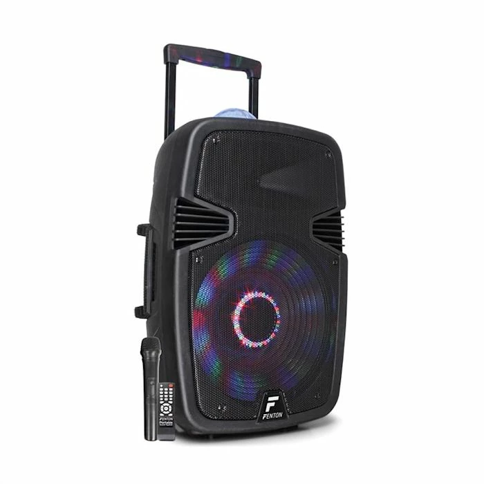 Que la fĂŞte commence ! L’enceinte active Fenton FT15JB ne fournit pas seulement le son nĂ©cessaire aux soirĂ©es et aux Ă©vĂ©nements, mais aussi une ambiance parfaite grâce Ă son jeu de lumières LED intĂ©grĂ© et sa Jellyball colorĂ©e !
