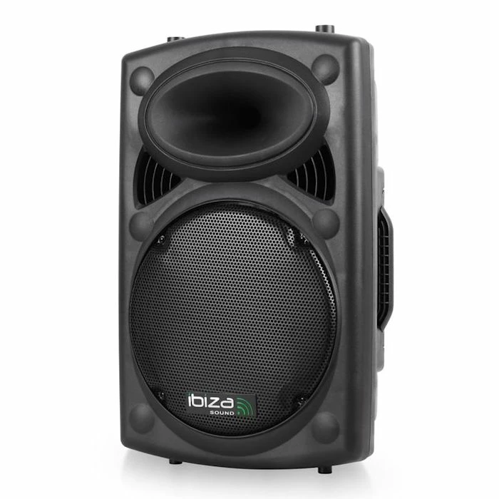 Set d’enceintes Master-Slave professionnelles avec une enceinte active et une enceinte passive de25cm (10″) issues de la sĂ©rie Ibiza-SLK avec entrĂ©es USB et SD compatibles MP3, section nicro Ă©tendue et châssis ABS pour un usage en extĂ©rieur.