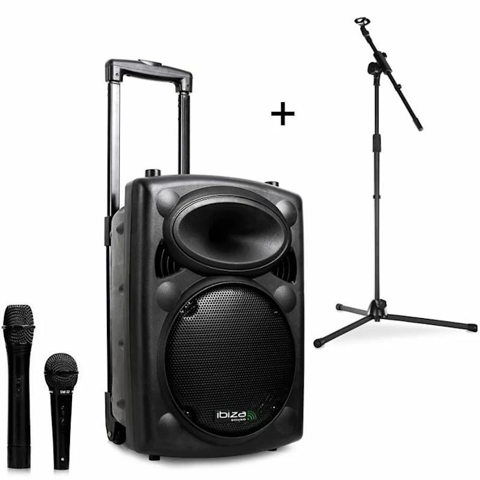 - Chaine PA mobile active avec Subwoofer de 20 cm (8 « ), ampli de 100W et enceintes de 200W RMS (équivalent à 400W max.)