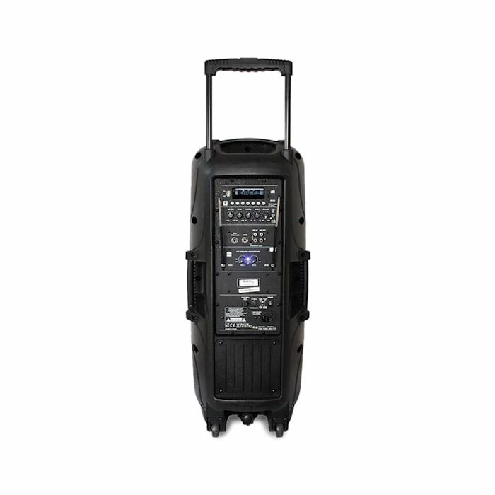 - ChaĂ®ne PA mobile avec deux tons basse de 23cm (10″) et 300W de puissance RMS