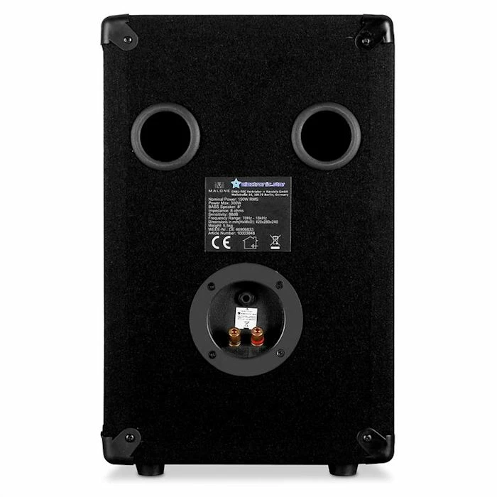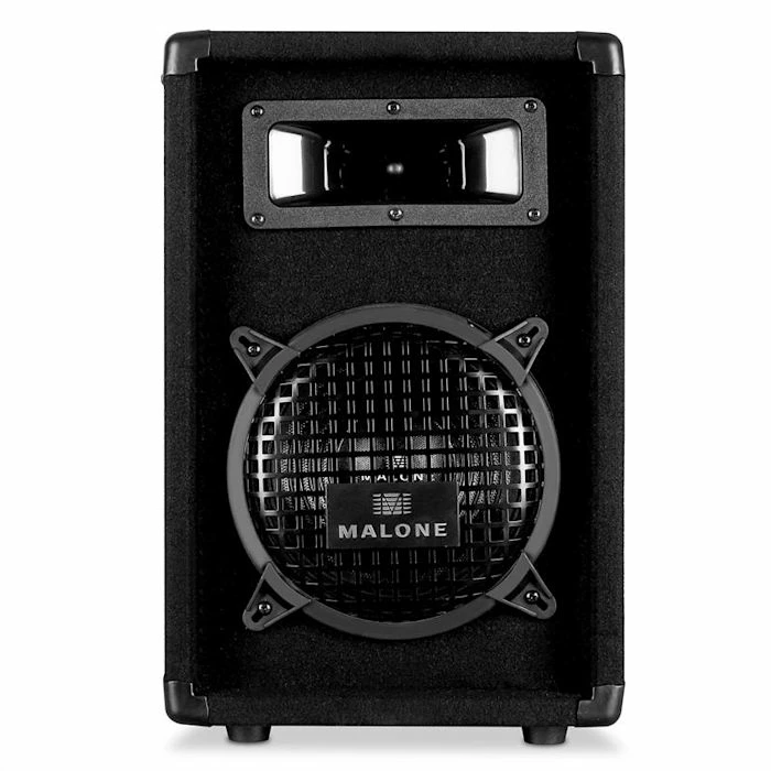 - Enceinte Ă 2 voies avec subwoofer de 20cm (8″), trompe medium et tweeter piezo