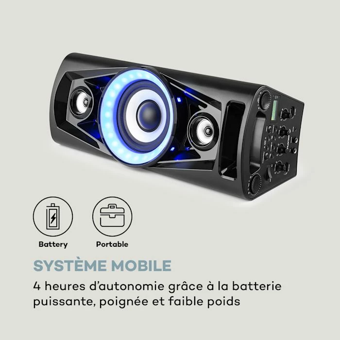 - Utilisable partout : indépendant du courant secteur grâce à sa batterie de 4500 mAh intégrée pour un plaisir musical nomade