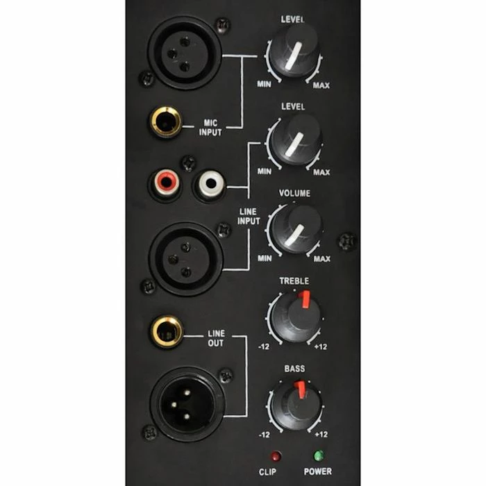 - Système actif à 2 voies avec un subwoofer de 12 « / 30cm de 300W RMS max. (600W Peak) et un amplificateur ayant une puissance de 1100W Peak
