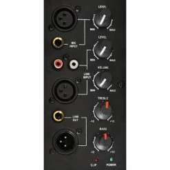 - Connexions: 1 x entrée ligne RCA, 1 x entrée microphone jack 6,3 mm, 1 x entrée microphone XLR, 1 x entrée ligne XLR, 1 x sortie ligne XLR, 1 x sortie ligne jack 6,3 mm