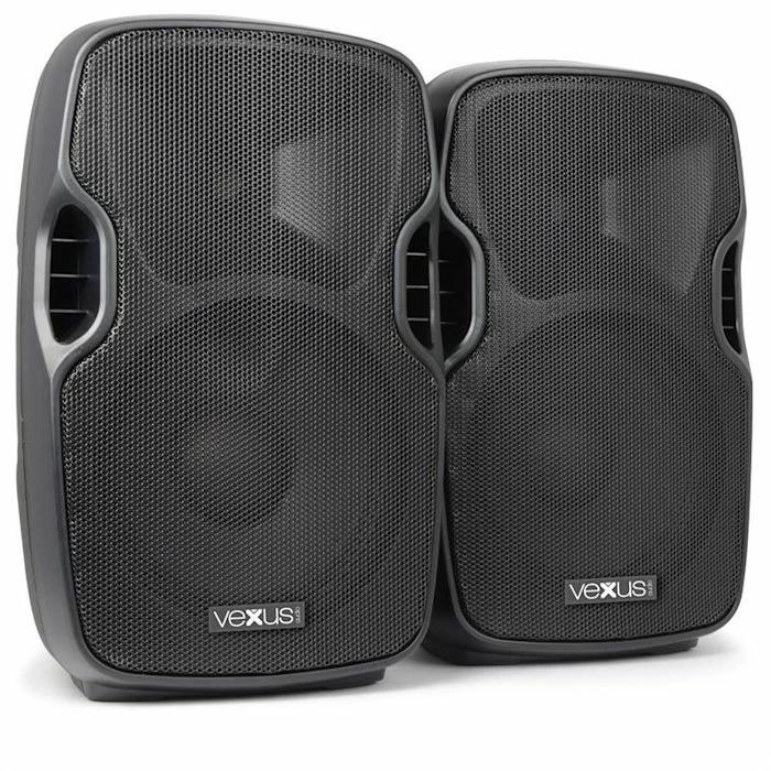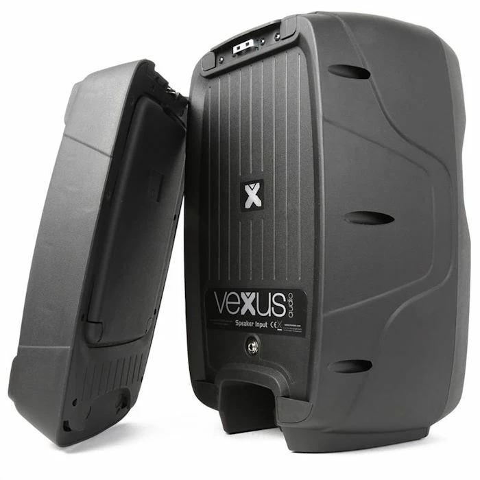 - Deux enceintes PA passives avec ton basse de 25cm (10″) et table de mixage active amovible
