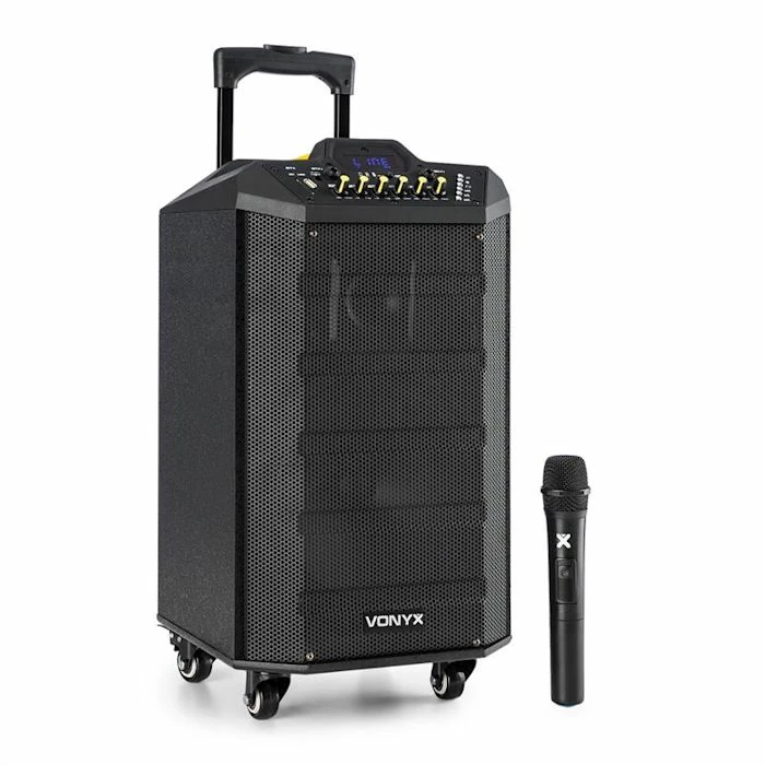 La chaîne PA Vonyx VPS10 apporte la musique là où vous en avez besoin. La batterie intégré et la possibilité de la transporter facilement en font une chaîne hifi multifonction portable.